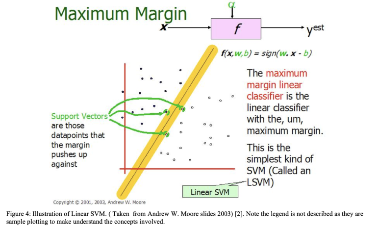 Margin(마진)의 뜻은 경계선과 각 클래스 데이터 사이의 거리를 의미하며, Maximum Margin: 두 클래스 사이에서 가장 넓은 여유 간격을 갖는 경계선 즉, 두 클래스 사이의 거리가 같은 경계선을 찾으려고 할것이다.