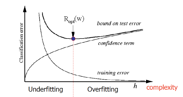 training error 와 confidence term 의 합이 최소가 되는 지점을 골라야 한다!