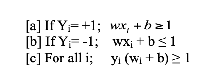 일때 , 우리는 이 초평면이 두 개의 클래스에 대해 1이상 떨어지게끔 설계를 하려고 한다.